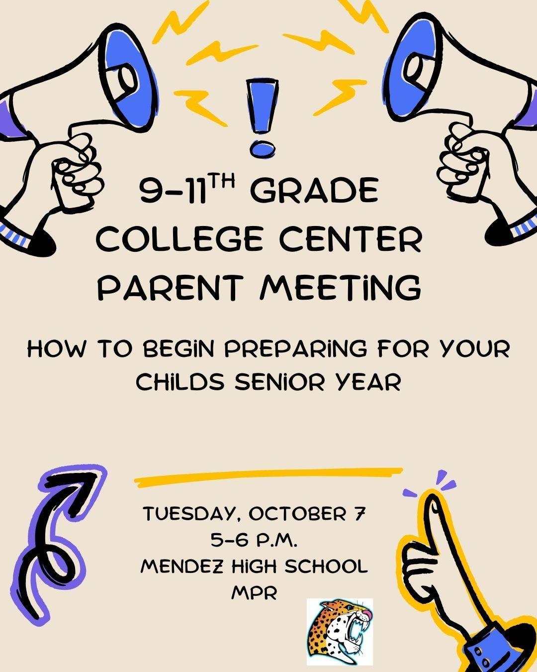 9th-10th-11th Grade College Center Parent Meeting/Reunion del Centro de Colegio para padres fe 9-10-11 grado