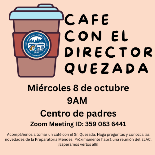 Coffee with the Principal Oct.8th @9AM/Cafe con el director el 8 de octubre @9AM